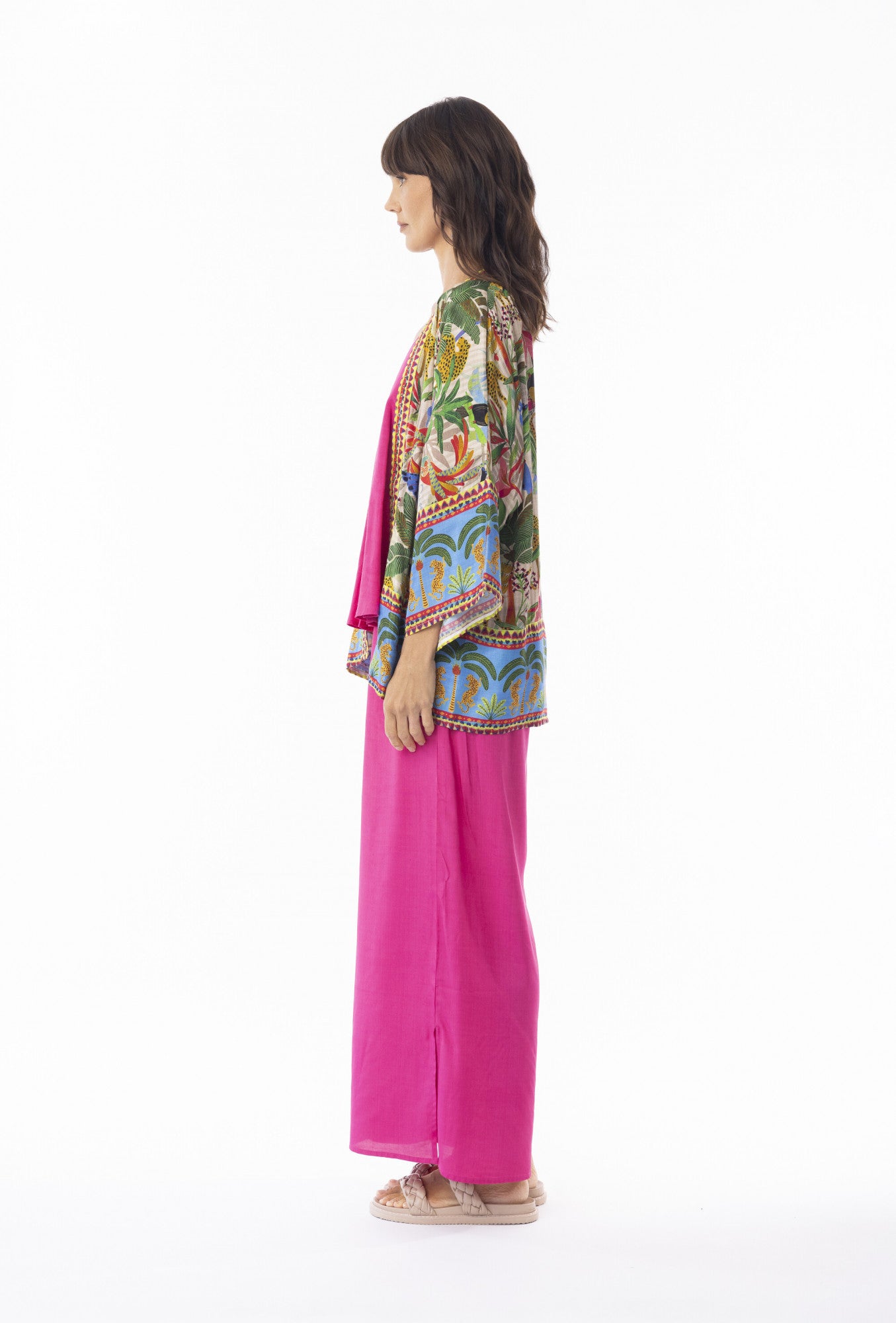 Featuring the vibrant Amazonian flora and fauna print, this relaxed layer has no fastenings — simply sling it over your shoulders for instant polish. Perfect for twilight strolls when the sun dips and the night lingers.