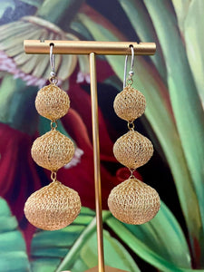 SERIOUSLY DESIGNED - Three Ball Graduating Mesh Earrings - GOLD
