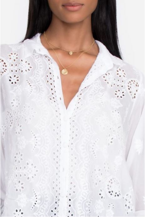 As soft as a spring breeze and cool as a starry night, the Gwen Blouse by Johnny Was brings easy elegance to every occasion. Crafted from ultra-soft rayon, this feminine white blouse features delicate embroidery and light, fluttery sleeves that move with grace.